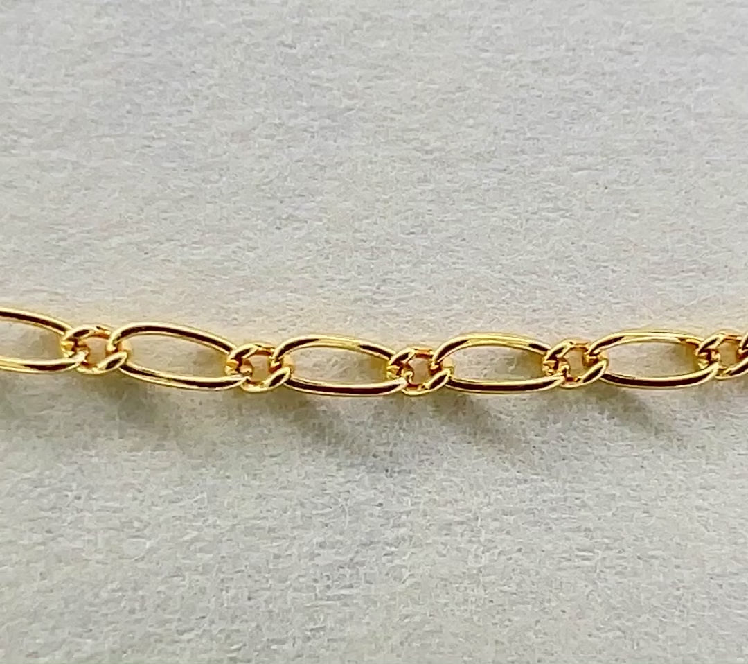 Elevate your style with our Figaro chain! This dainty chain is perfect for adding a touch of elegance to any outfit. Personalize it with your favorite charms to make it truly unique and express your individuality. Upgrade your accessories with this must-have piece!