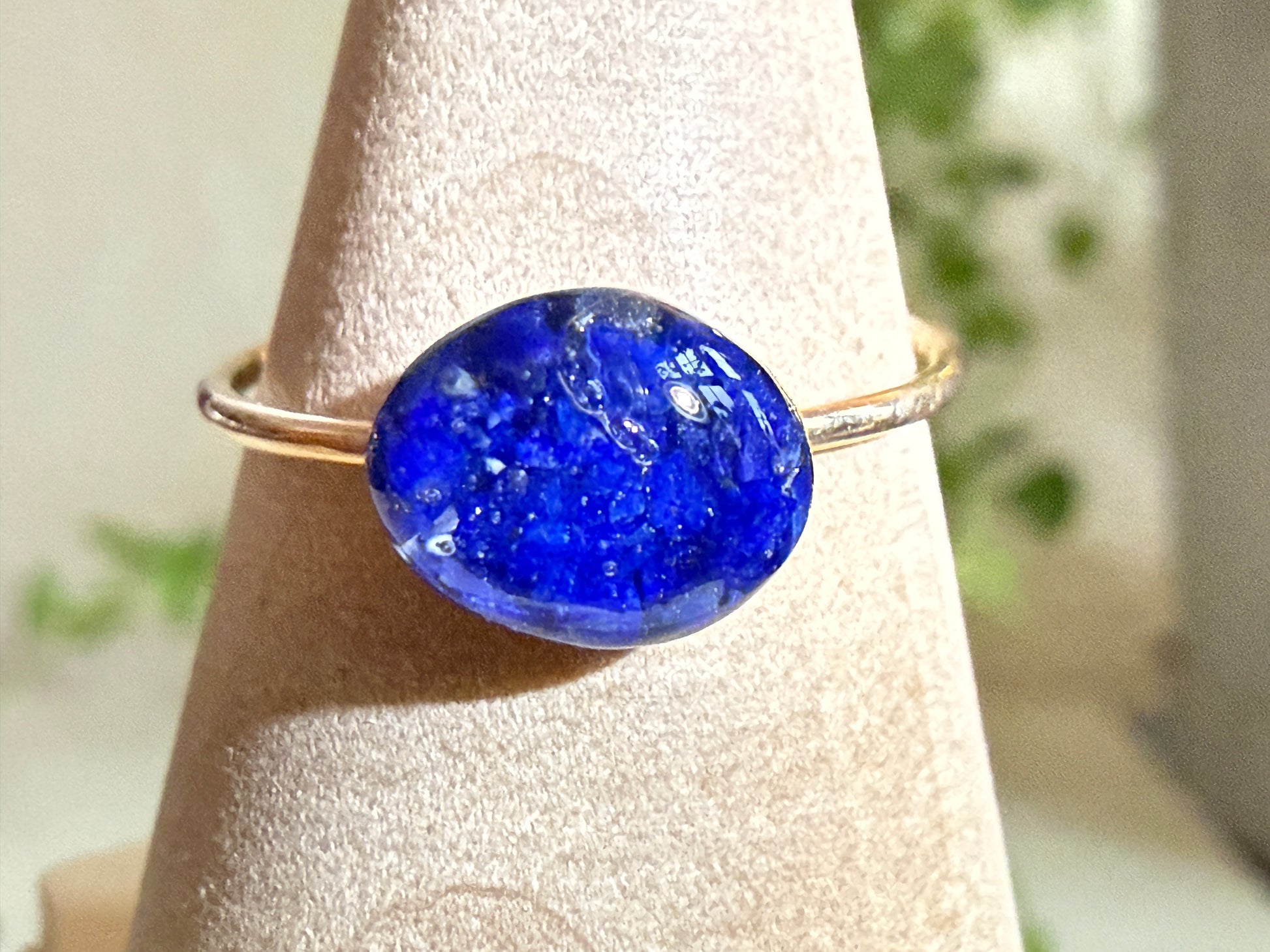 Handcrafted with care, this Crushed Lapis Lazuli Ring features a unique blend of vibrant blue stones set in luminous gold-filled metal. Its elegant design makes it a standout accessory that effortlessly elevates any ensemble, perfect for those who value originality and refined style in their jewelry collection.