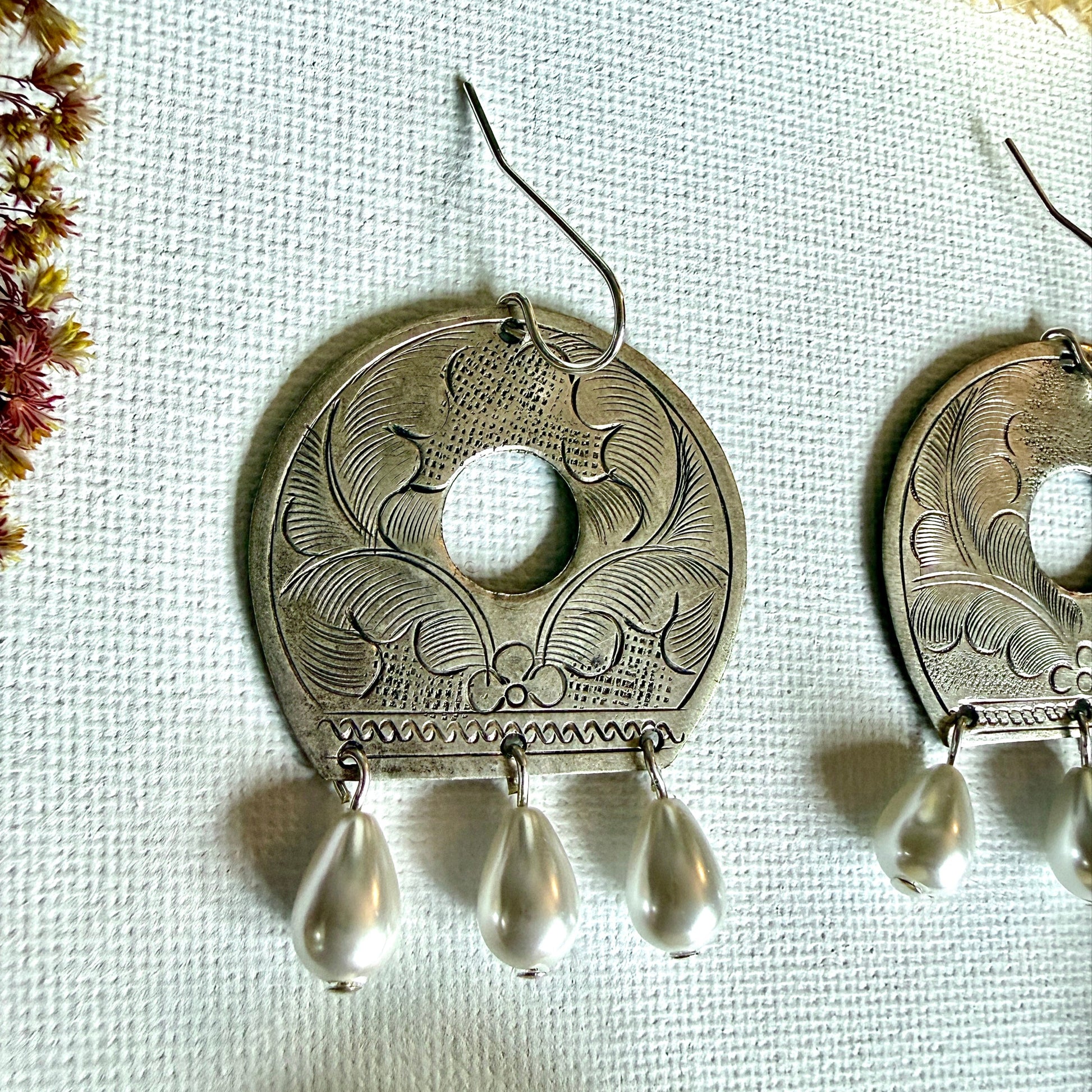 The Isolde Earrings showcase elegant Art Nouveau style with pearls and silver. Their unique design adds a graceful, timeless touch to any outfit, making them a perfect choice for effortless sophistication.
